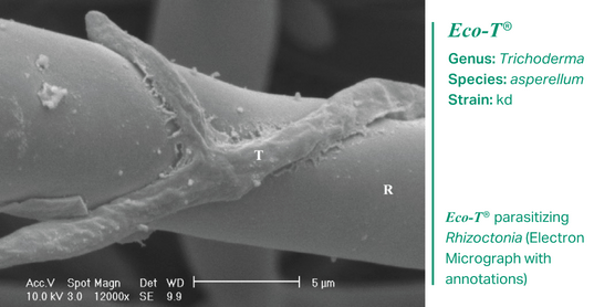 Trichoderma asperrellum strain kd is the active ingredient in our soil health solution, Eco-T®. This strain of Trichoderma was isolated from plant roots found in local South African soils and was found to be the best performing strain when compared to a 1000 other strains. It is well adapted to the rhizosphere where it fights off soil borne diseases and enhances root growth.